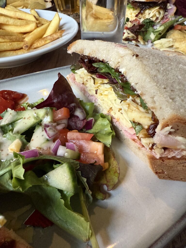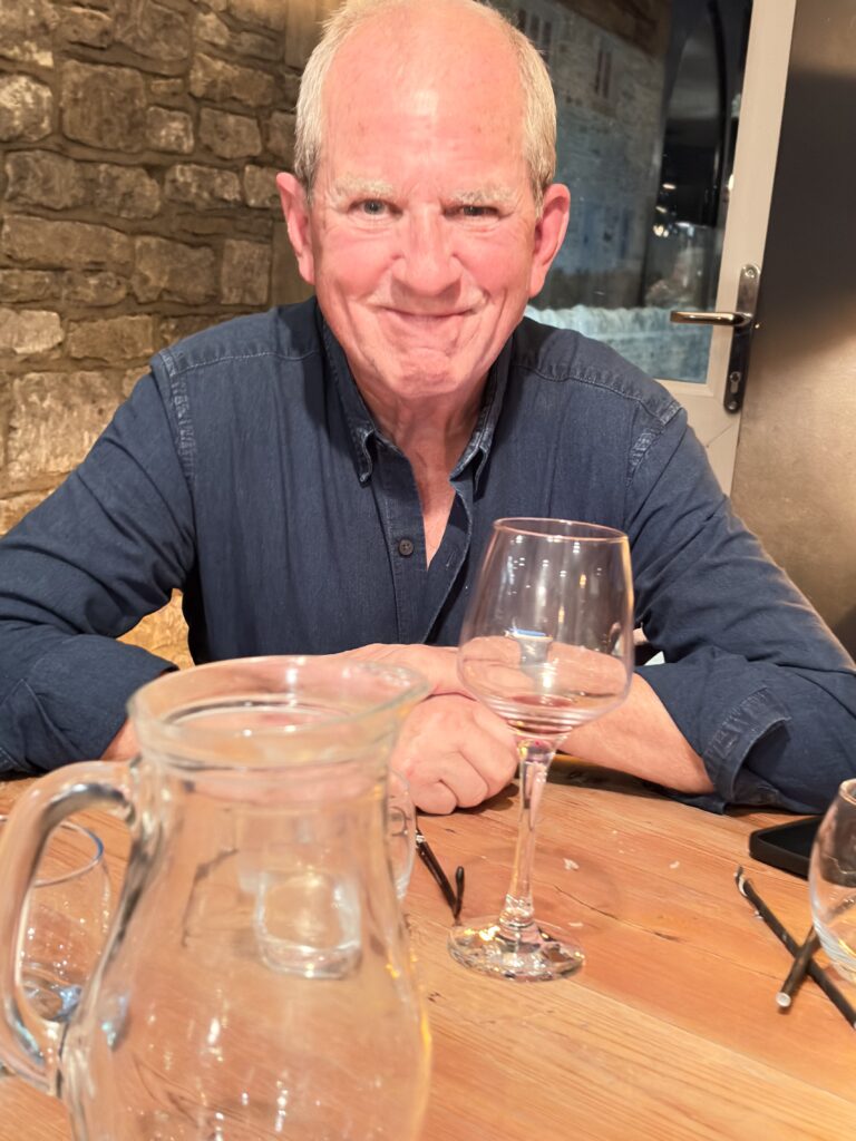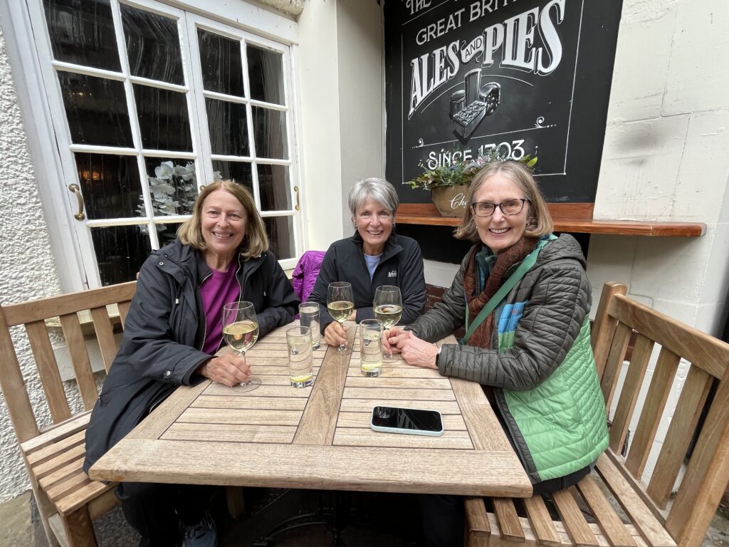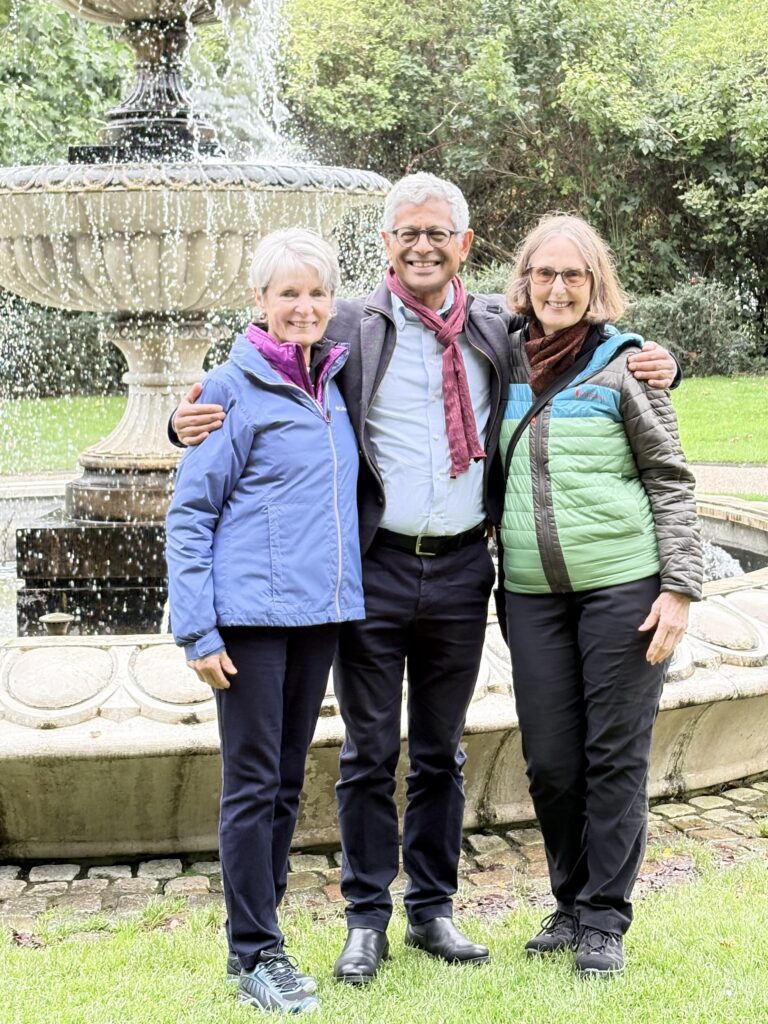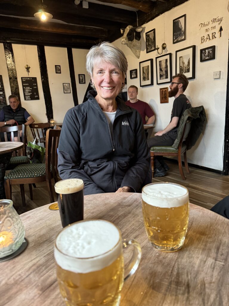 Our last day in England was spent largely with two friends Elaine and I met on our first camino in 2022. Originally, our travel arranger, Garry, was going to walk with us the first 4 days—I figured Amy would feel better if we were with someone who knew what they were doing while going over the Pyrenees. Then Garry said he had another client, Chris, who was starting the same day, and asked if he could join us. Of course. Then a while later he said he had a friend coming to visit him, and did we mind if he walked with us. Ubaid was English, with parents from Pakistan, and he looks like a Pakistani George Clooney, he said. We said of course, of course. And then Garry got covid, and Elaine and I walked with two guys we never met, who both turned out to be great travel companions.