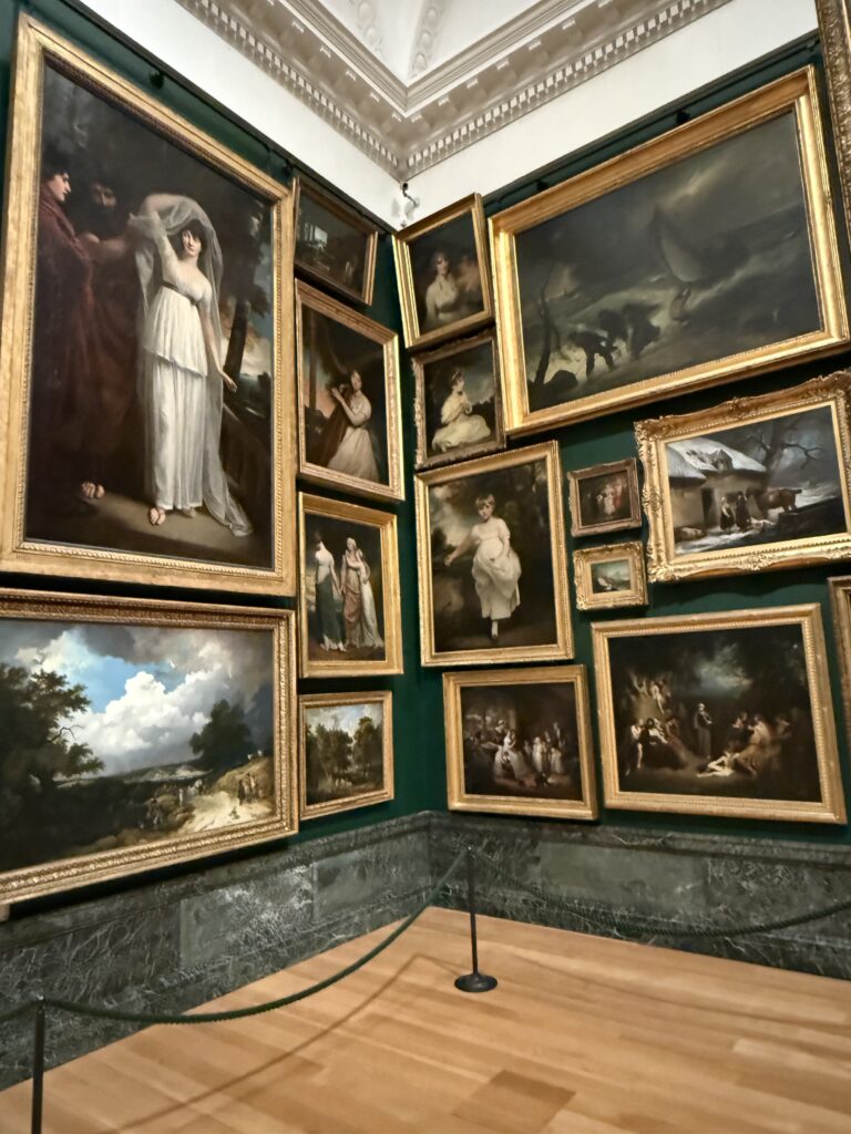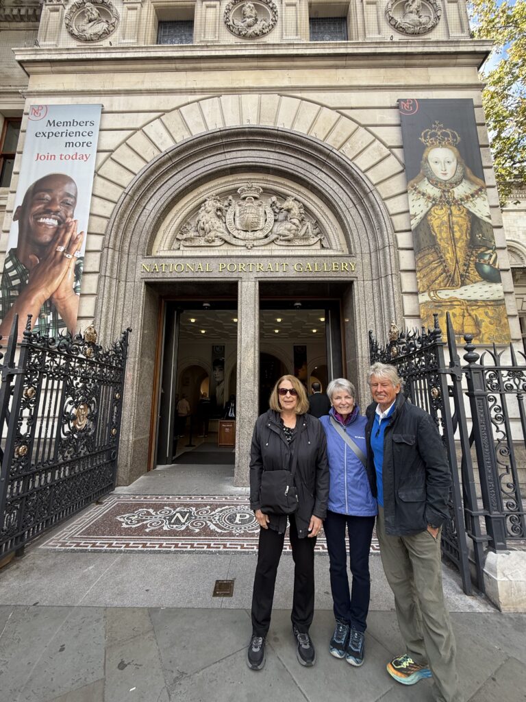 We went to the National Portrait Gallery, recommended by Hilary. Mary was in the first throes of her cold and wanted to just rest in the cafe, so the rest of us explored, getting through a tiny portion of the exhibits. We saw some of the portraits of royals, but they were not as interesting as the portraits of other people—writers, politicians, suffragettes, etc. And there was a special juried exhibit of portraits submitted by people from all over, and that was fabulous.